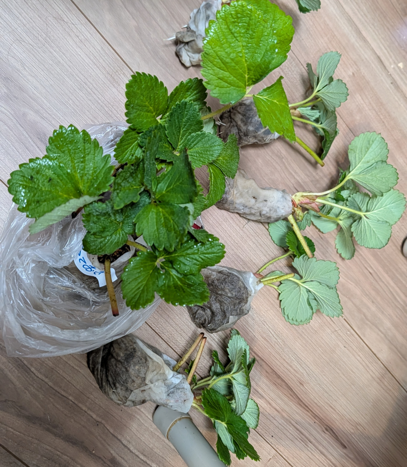 ↓イチゴ農家やっている実家からイチゴの苗を送ってもらった。