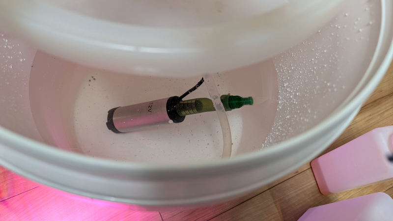 12W出力のLEDライトを設置してみましたが全体がやっと300LUXに到達する程度。300Luxはオフィスの明るさぐらいで植物を栽培するには光量が足りないと思われる。