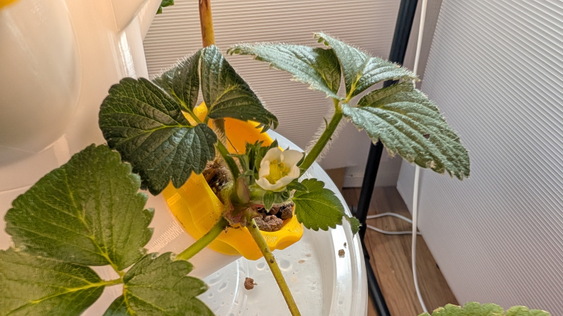 001 [01/02 13:52]Sweet'★1:モノタロウの水耕栽培用資材を見る限りでは、植物も電球ももっと密集しないと効率悪いのでは? あと根の遮光が充分か、横方向に成長するイチゴにそのポットの形が向いているのか気になります(葉野菜には最適だと思いますが) 葉の大きさや枚数等、生育が(結実に)充分か親御さんに訊いてみては? ↑(4)