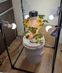 ハウジングで反射させる方式だとこれが限界かなぁ。水耕栽培装置本体とかこまめにアルミテープで包んだらもう1000luxぐらい増加しそうだけど、照度は1万Luxぐらいは欲しいのももう少し電球増やすかなぁ。現在の照明の消費電力は67W×1日8時間。