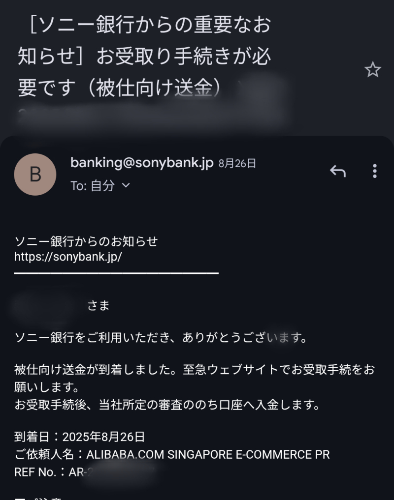 ●ソニー銀行に口座開設してAliexpress(通称アリエプ)のアフィリエイト収益をドルで受け取るにはメールをきちんと確認するのが必要