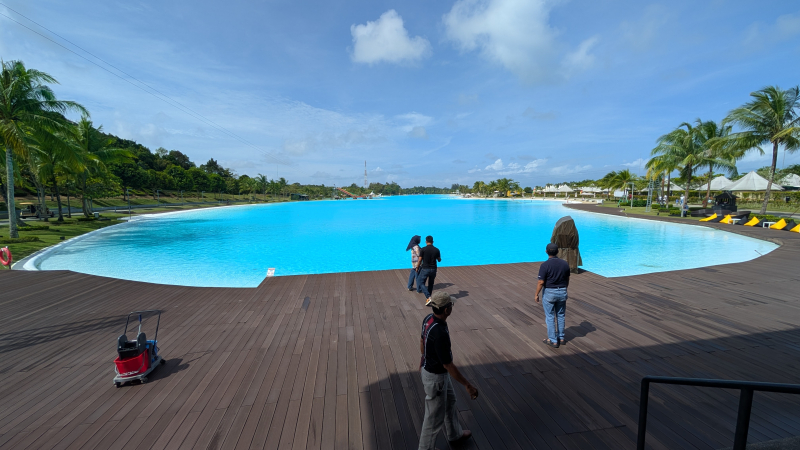 旅行2日目、フェリーターミナルに行きインドネシアルピア(現金)をゲットした後、本ホテルの一番の売りである人工ラグーンでやっと遊びました。